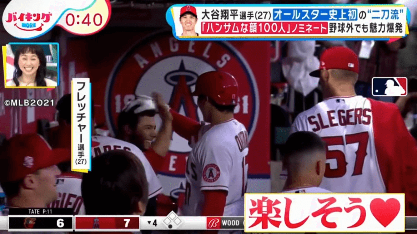 7/7のバイキングの放送、いつものように、お約束の大谷枠で、来るオールスター戦に向けて大谷情報をわかりやすくパネルをまじえて解説。前回のAKI猪瀬氏の二刀流確定予想もほば的中した後に、今度は、大谷を交える恋?模様の三角関係に言及。ホームランのお出迎えでもおなじみのイグレシアスに疑惑が・・